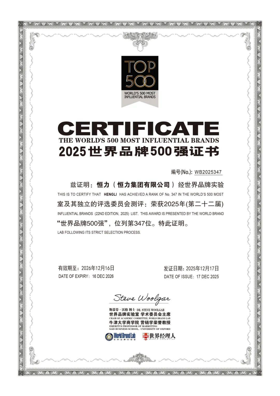 世界品牌尝试室发布2025年度“世界品牌500强”排行榜,恒力品牌取盛虹品牌凭仗稳健的成长实力取品牌影响力继续连任榜单并双双进位。此中,恒力品牌列第347位,较客岁提拔16位;盛虹品牌列369位,较客岁提拔11位,两家企业被认定为表示亮眼的“中国品牌”之一。