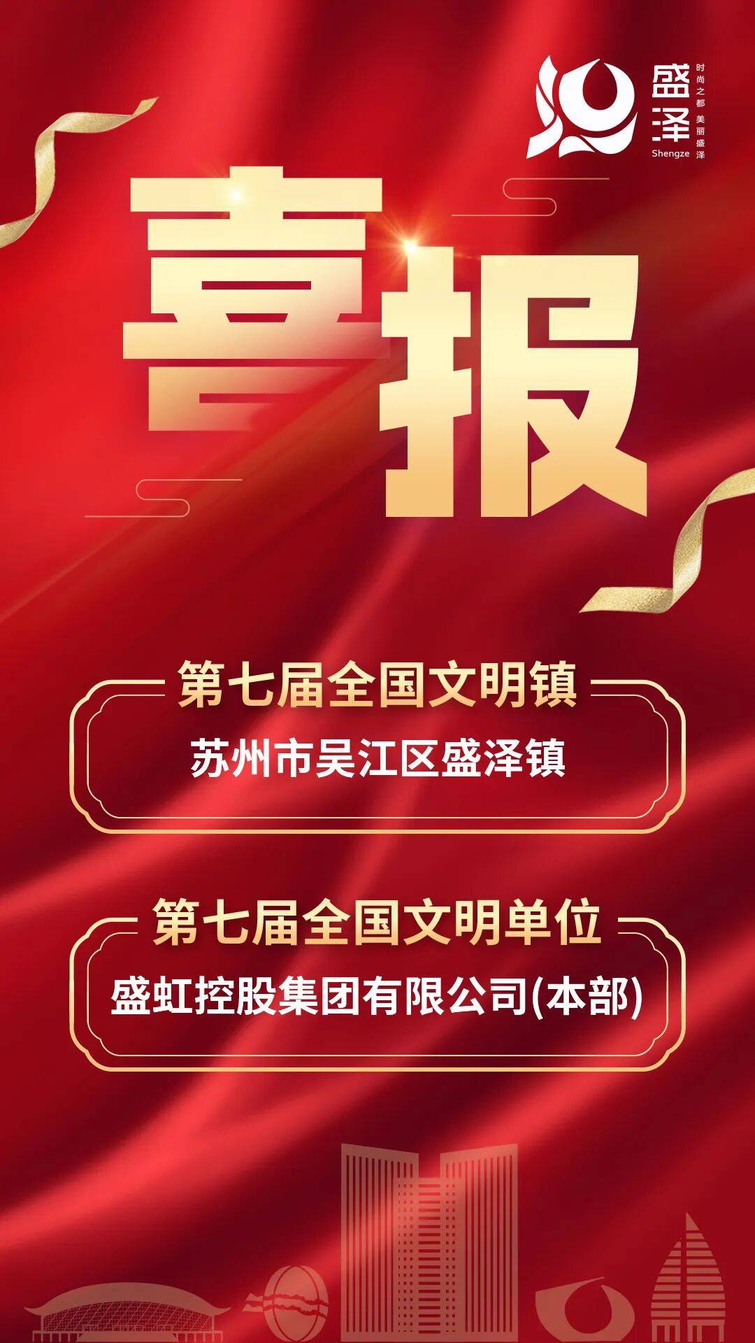 第七届全国文明城市、文明村镇、文明单元、第三届全国文明家庭称号荣获名单正式发布。盛虹控股集团无限公司(本部)获评全国文明单元,同时通过严酷的复查评估,恒力集团无限公司(本部)继续保留全国文明单元荣誉称号,黄家溪村继续保留全国文明村荣誉称号。至此,盛泽已累计具有四项国度级文明称号,彰显了聚力城市文明成长的显著。